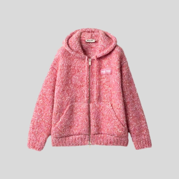 미우미우 코튼 플리스 집업 후드