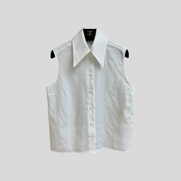 샤넬 자카드 슬리브리스 셔츠(화이트,핑크)
