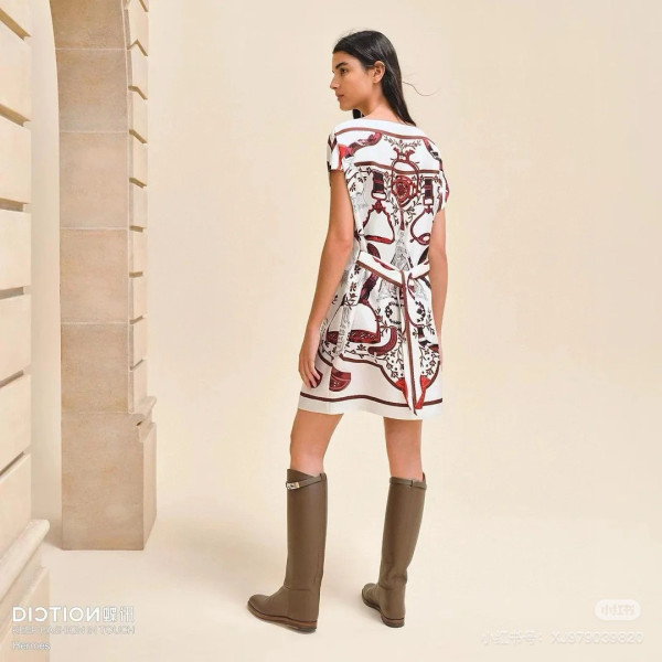 에르메스 실크 스커트 원피스(2color)