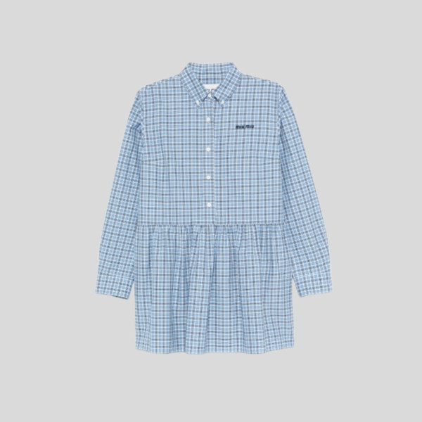 미우미우 플레드 폴로 칼라 반팔 원피스