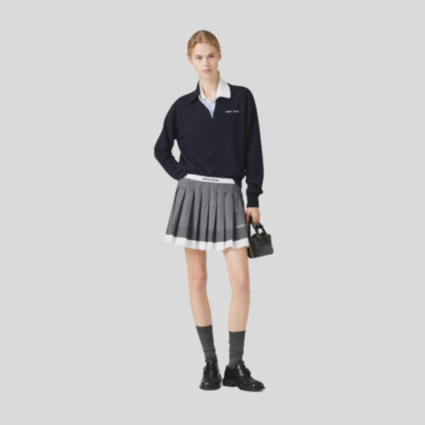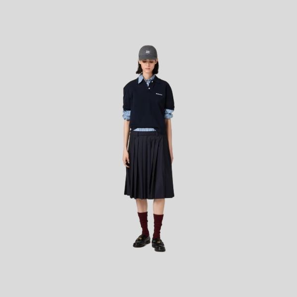 미우미우 니트 포플린 플리츠