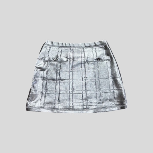 샤넬 실버 플레드 스커트