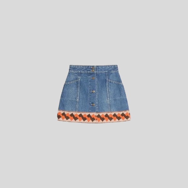 발렌티노 자카드 트림 데님스커트
