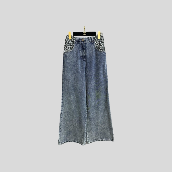 샤넬 블루 워싱 데님 팬츠