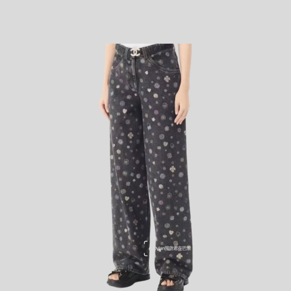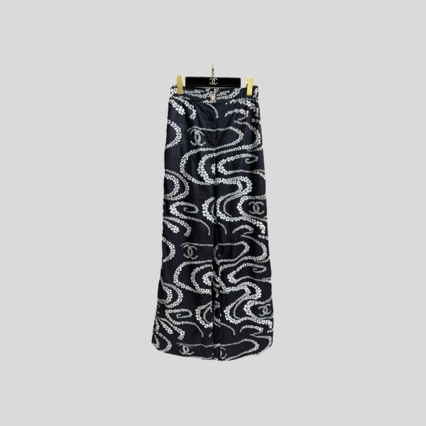 샤넬 프린트 와이드 팬츠