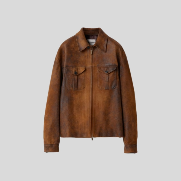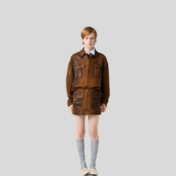 미우미우 왁스 스웨이드 가죽 자켓, 스커트