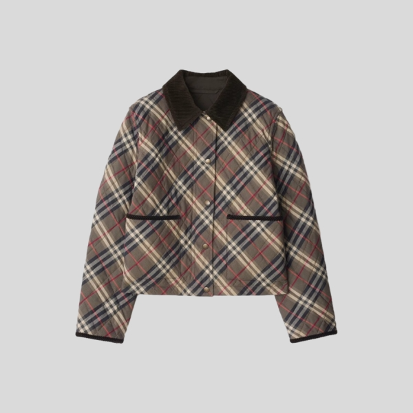 버버리 크롭 체크 퀼팅 코튼 자켓