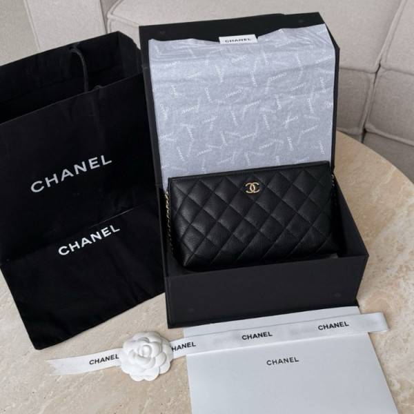 샤넬 클래식 지퍼 장지갑 캐비어 블랙 금장 AP3877