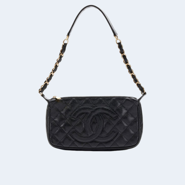 샤넬 블랙 퀄티드 캐비어 레더 숄더백
