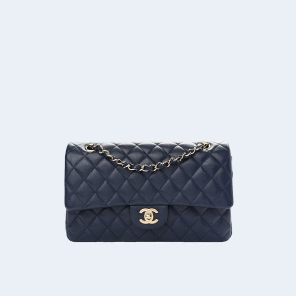샤넬 클래식 미디움 카프스킨 네이비 골드