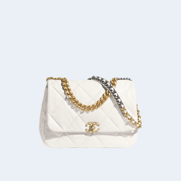 샤넬 19백 라지 램스킨 화이트 골드