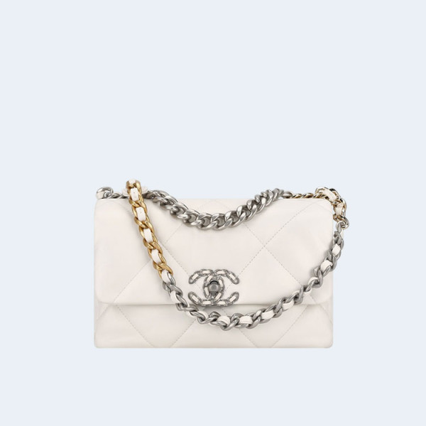 샤넬 19백 미디움 램스킨 화이트 골드