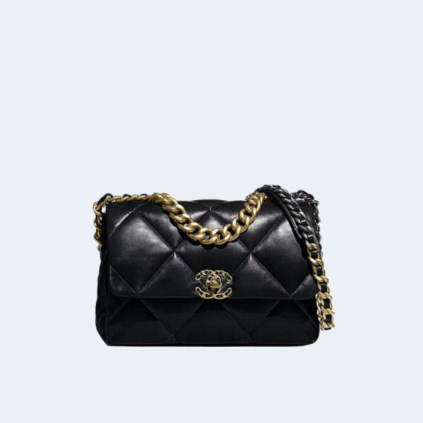 샤넬 19백 미디움 램스킨 블랙 골드