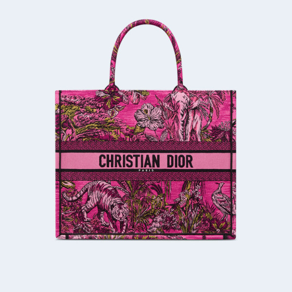 디올 푸시아 멀티 컬러 북 토트 라지 백