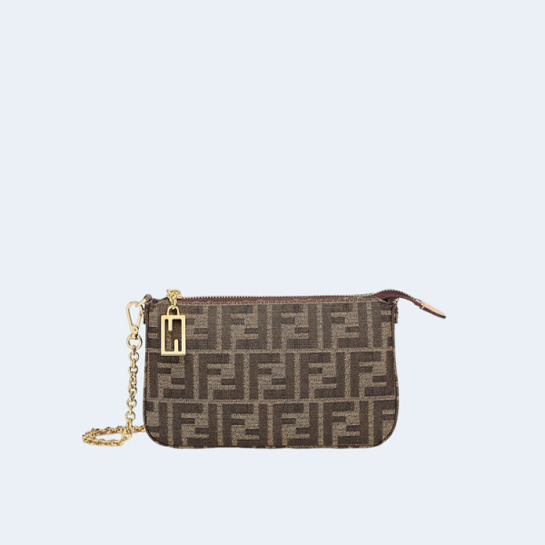 펜디 자카드 FF 패브릭 체인 클러치 브라운