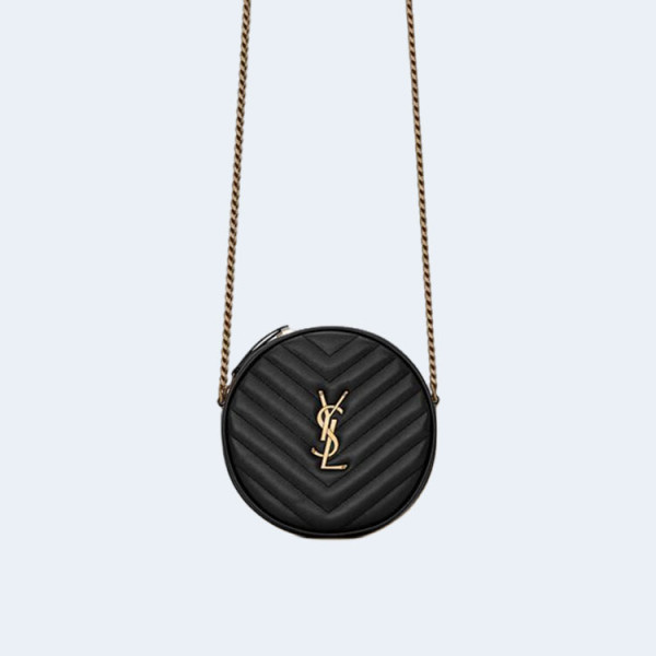 생로랑 쉐브론 라운드 카메라 백 블랙