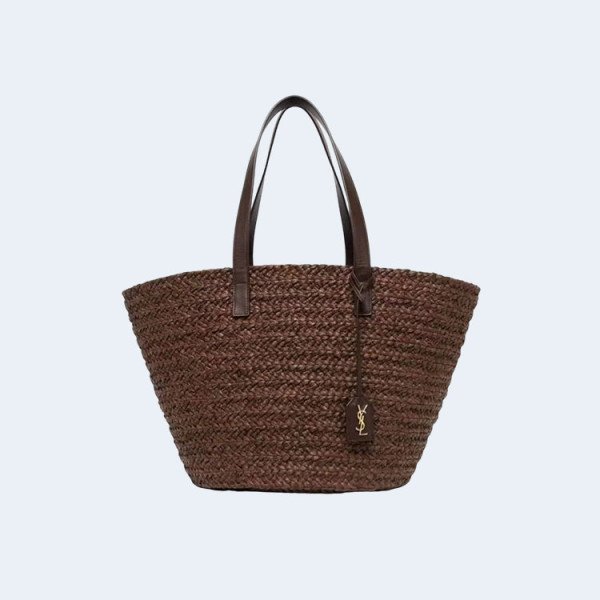 생로랑 파니에 미디엄 라피아 바스켓 백 와인