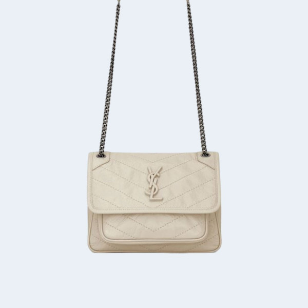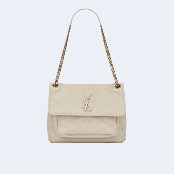 생로랑 니키 스웨이드 미디움 체인백 화이트