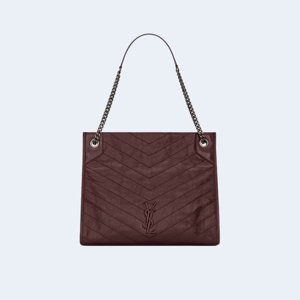 생로랑 니키 스웨이드 미디움 체인백 와인