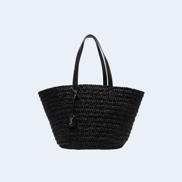 생로랑 파니에 미디엄 라피아 바스켓 백 블랙