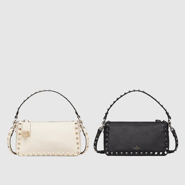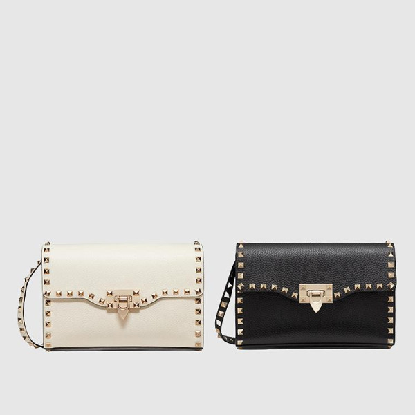 발렌티노 락 스터드 그레인 송아지 가죽 크로스 스몰 바디백