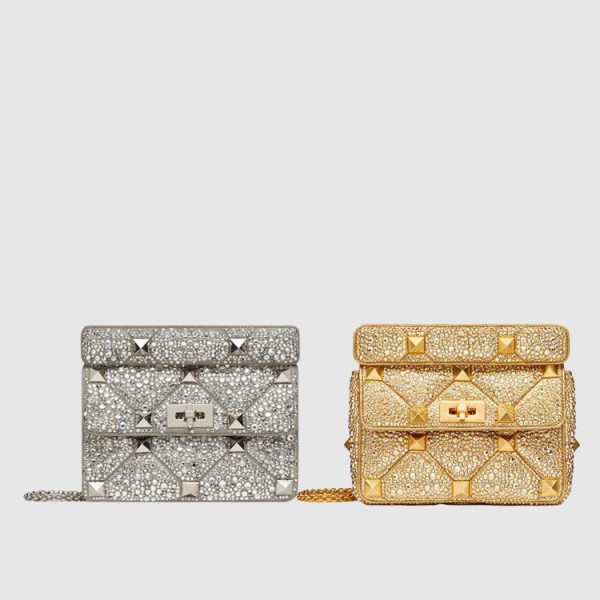 발렌티노 로만 스터드 스파클링 자수 체인 스몰 숄더백