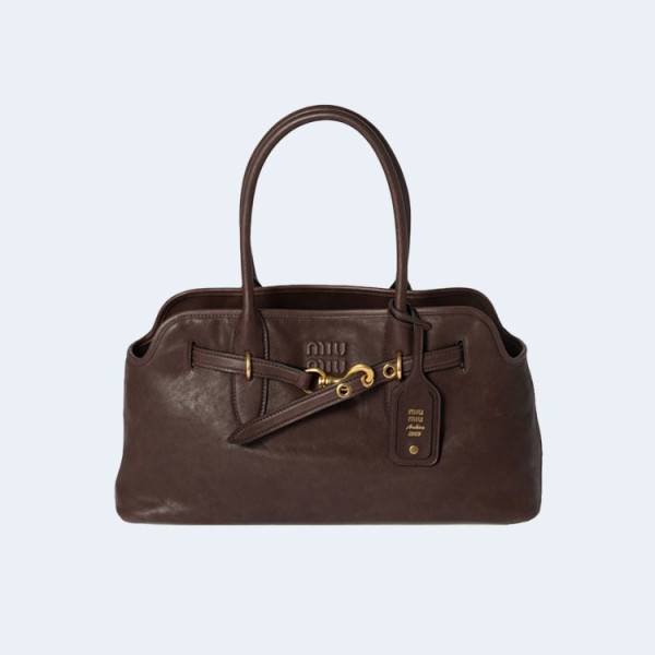 미우미우 아방뛰르 나파 가죽백 라지 브라운