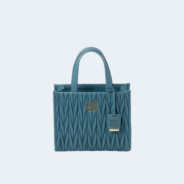미우미우 마테라쎄 나파 가죽 토트백 블루