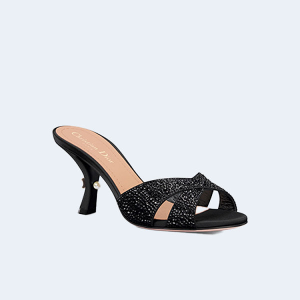 디올 Tribales 뮬 힐 블랙 스웨이트 라인스톤