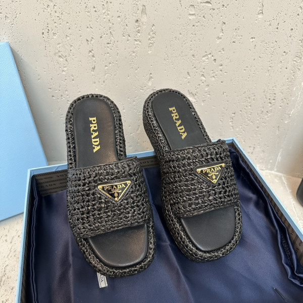 프라다 크로셰 플랫폼 슬라이드 슬리퍼