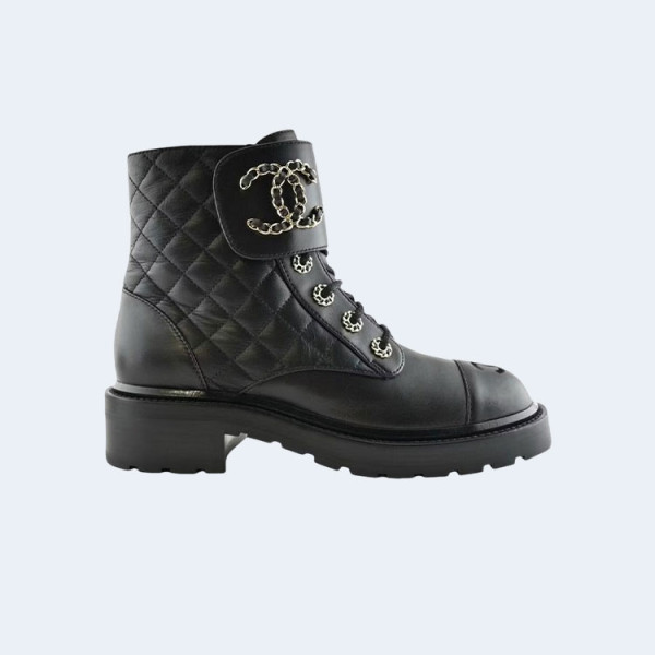 샤넬 퀄티드 범캣 부츠 블랙 레더