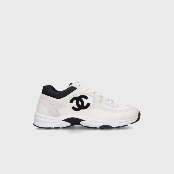 샤넬 메쉬 스웨이드 카프스킨 화이트/블랙 스니커즈