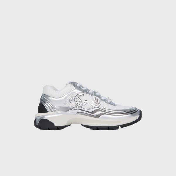 샤넬 패브릭 라미네이티드 화이트/실버 스니커즈