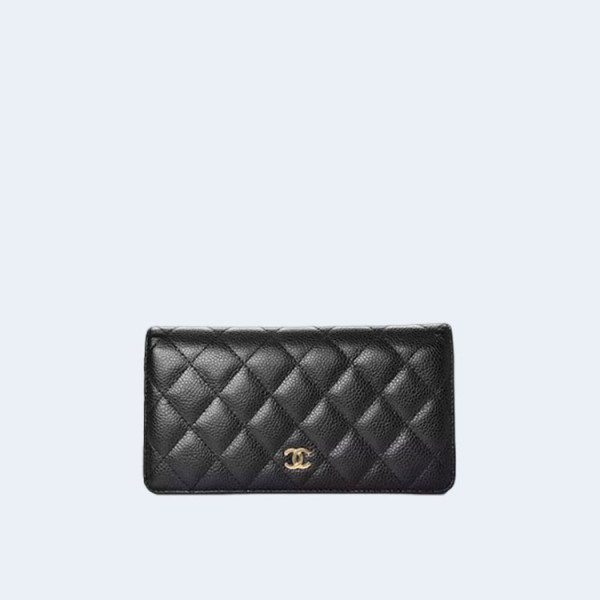 샤넬 클래식 캐비어 플랩 장지갑 블랙 골드