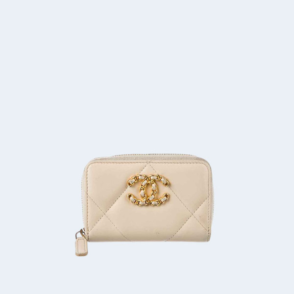 샤넬 19 지퍼 코인 지갑 베이지