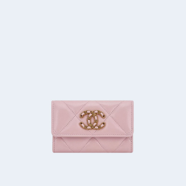 샤넬 19 플랩 카드 홀더 핑크