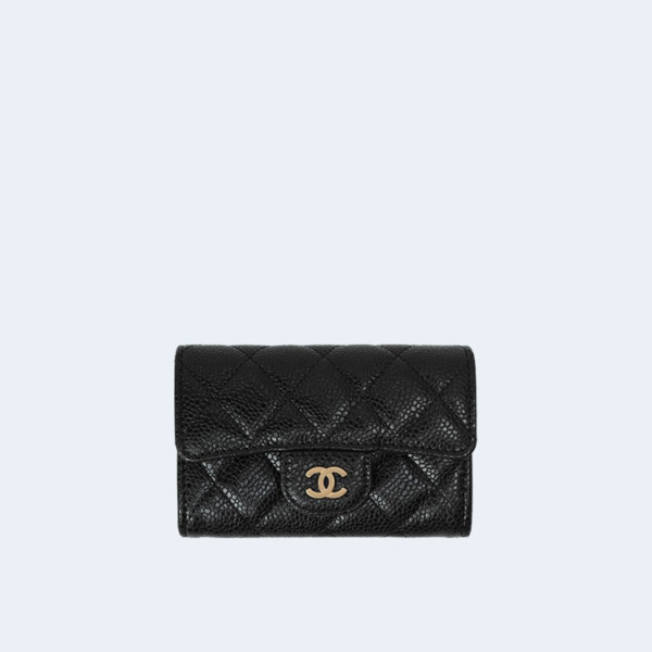 샤넬 클래식 캐비어 카드 홀더 블랙 골드