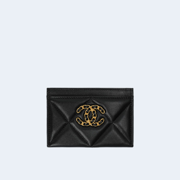 샤넬 19 카드홀더 램스킨&골드 메탈 블랙