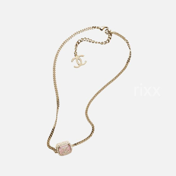 샤넬 핑크 크리스탈 펜던트 네크리스