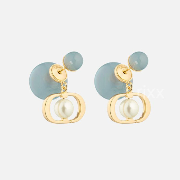 디올 트라이벌 스카이블루 투명 레진 진주 귀걸이