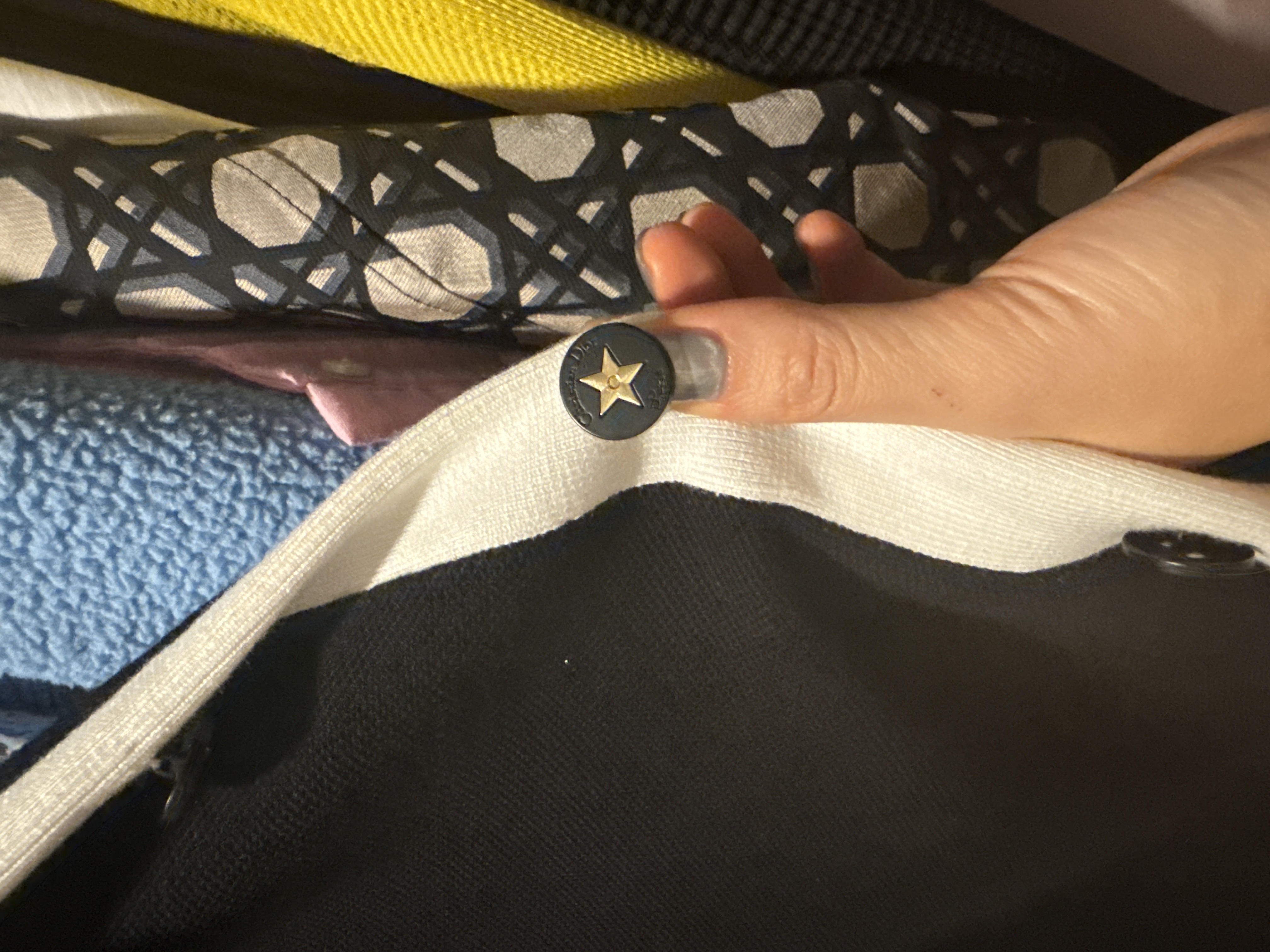 미우미우 체크 테디 재킷, 지퍼 장식