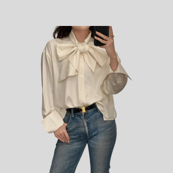 셀린느 보우 맥시 블라우스 실크(2color)