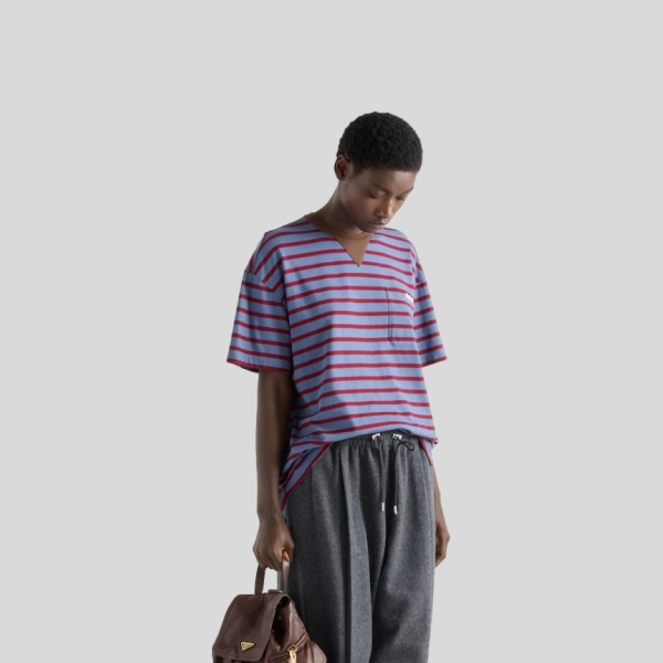프라다 오버사이즈 스트라이프 저지 티셔츠