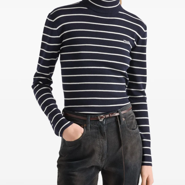 프라다 줄무늬 울 터틀넥 스웨터