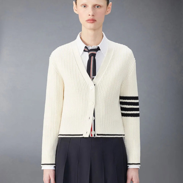 톰브라운 브이넥 니트 가디건 (화이트,그레이)