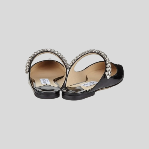 지미추 크리스털 스트랩 디테일 블랙 나파 가죽 슬리퍼 스니커즈